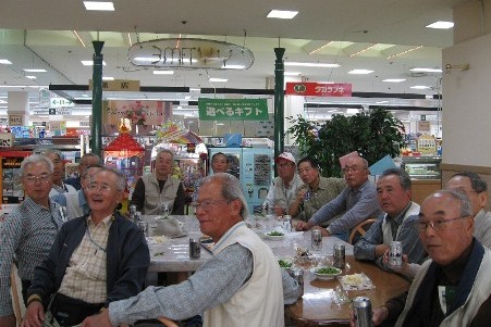 正午近くになり、「腹へったぞ」の声もあり、足早に次の目的地「じゅらくの里」へ。風光明媚な丘陵につくられた、せせらぎ水路、人工池、パターゴルフなどもある健康・福祉ゾーン。ここで自由にお弁当時間。
