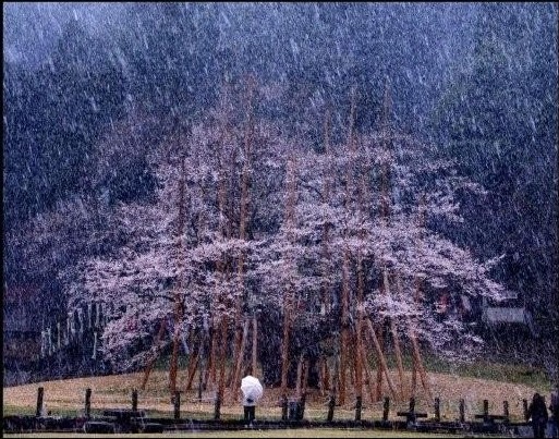 | 「春雪」 春雪をかぶった淡墨桜 |