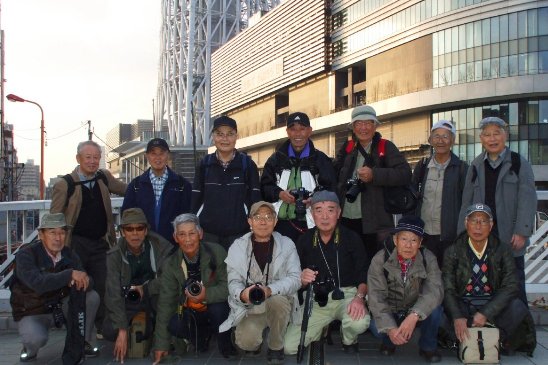 御苑の紅葉は今年は色付きがやや遅い感じであるが、それでも広大な御苑内には紅や黄に色づく木々が結構見られ光を受けて輝き美しい。他の撮影会グループも大勢来ている。各自好みの撮影ポイントを探しながら12時30分頃迄撮影し、昼食の後東京スカイツリーに向かう。