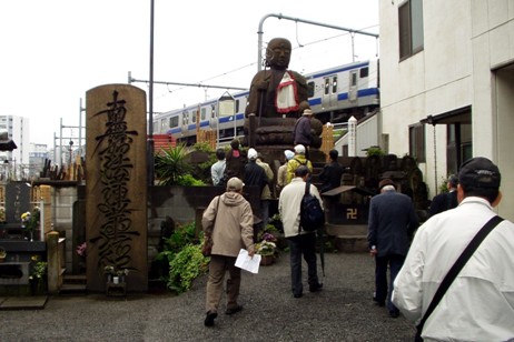 さらに北上、千住上宿(千住中組、北組)を通る。ここには、本陣、平旅籠に並んで、飯盛り女(娼妓)を抱えた食売旅籠が30余軒も軒を列ねていたと言います。将軍が日光参詣の折に立寄った寺や飯盛り女の供養塔などを巡り、千住宿の格式と歓楽を偲んだ次第です。