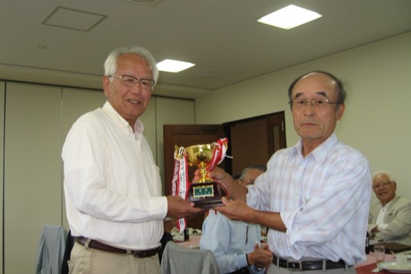 今回の参加者の平均年齢は約72歳、この中にあって中堅どころの馬場智章さんが日頃の腕前を発揮、優勝(net72.8)と数少ないニアピンをも獲得した。