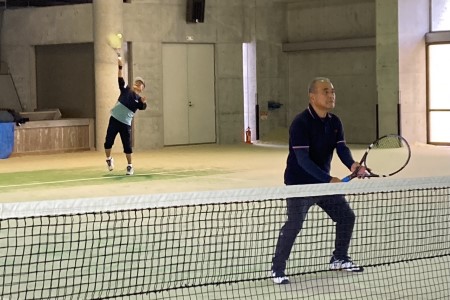 テニス会は全てダブルスの4ゲーム方式でペアを変えて各人が5試合を行い、