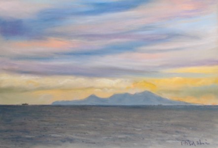 C 「東京湾外朝焼け」 パステル 35×51cm